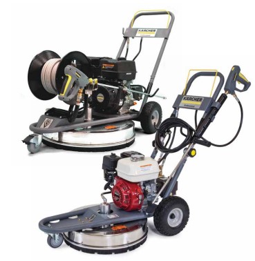 The Jarvis series is a complete solution for quick, streak-free cleaning of businesses’ entrances, parking lots, tennis courts, pool decks and sidewalks. This easy to use cold water surface cleaner pressure washer is an all-in-one unit with the pump and engine attached to the surface cleaner.
