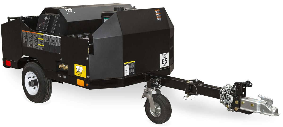 Easy to tow and equipped with a 12V Beckett burner, the hot water mini trailers are durable and perfect for cleaning on the go.