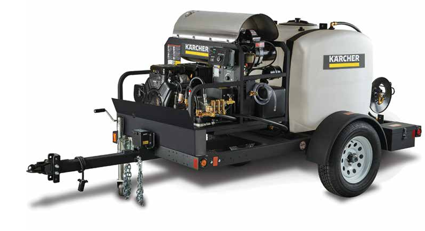 Adaptable and designed to accommodate a variety of pressure washer skids, the Kärcher TRK-3500 pressure washer trailer is affordable, versatile, and easy to ship and store. Made of rugged 14-gauge steel, the trailer’s wheel and axle assembly feature a leaf-spring suspension of up to 3,500 lbs. Get cleaning by simply picking a compatible pressure washer and adding must-have options and accessories. Our preconfigured trailer packages include the TRK-3500 trailer, HDS 4.7/35 Pe Cage pressure washer, mounting kit, battery and high and low-pressure hose reels. Simply choose between electric or hydraulic brakes.