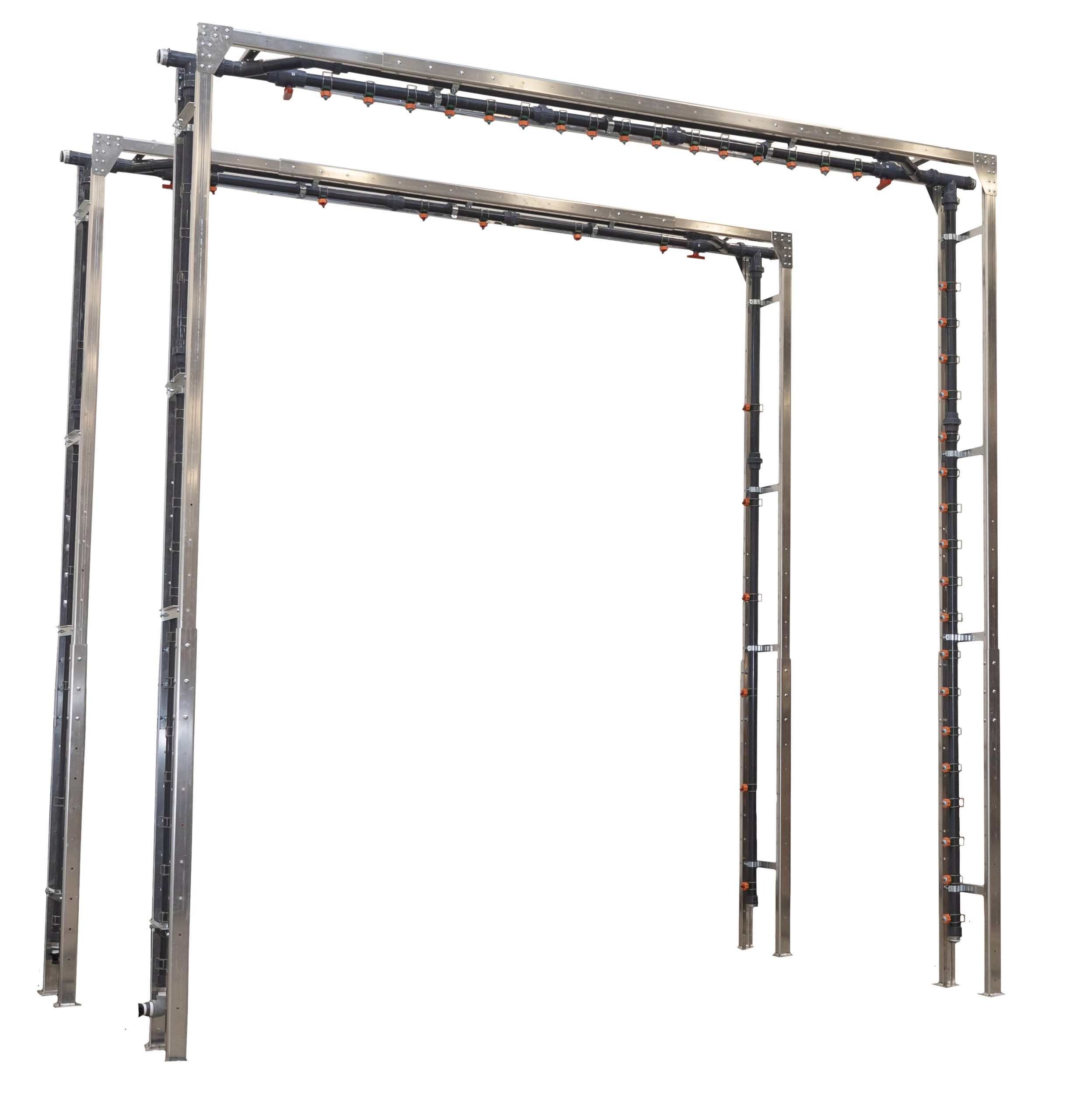 Constructed with aluminum frames, undercarriage spray bar and embedded spray nozzles, this system is customizable and designed for all types of drive-through vehicle wash systems.