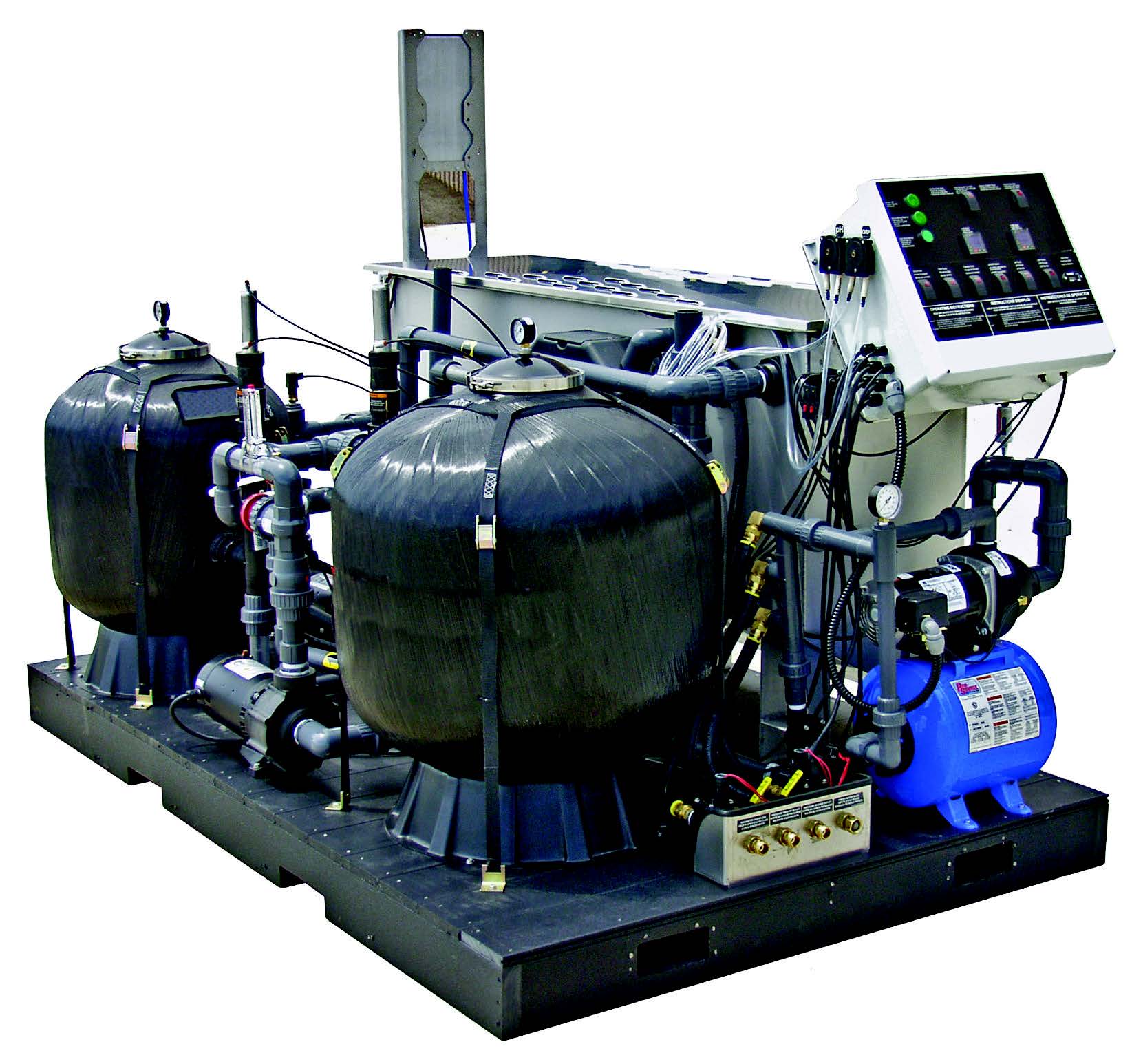 These recycle systems are designed to remove free hydrocarbons and filter water to be sent back through a pressure washer. They feature pH and ORP injection and are designed with corrosion-resistance tanks.